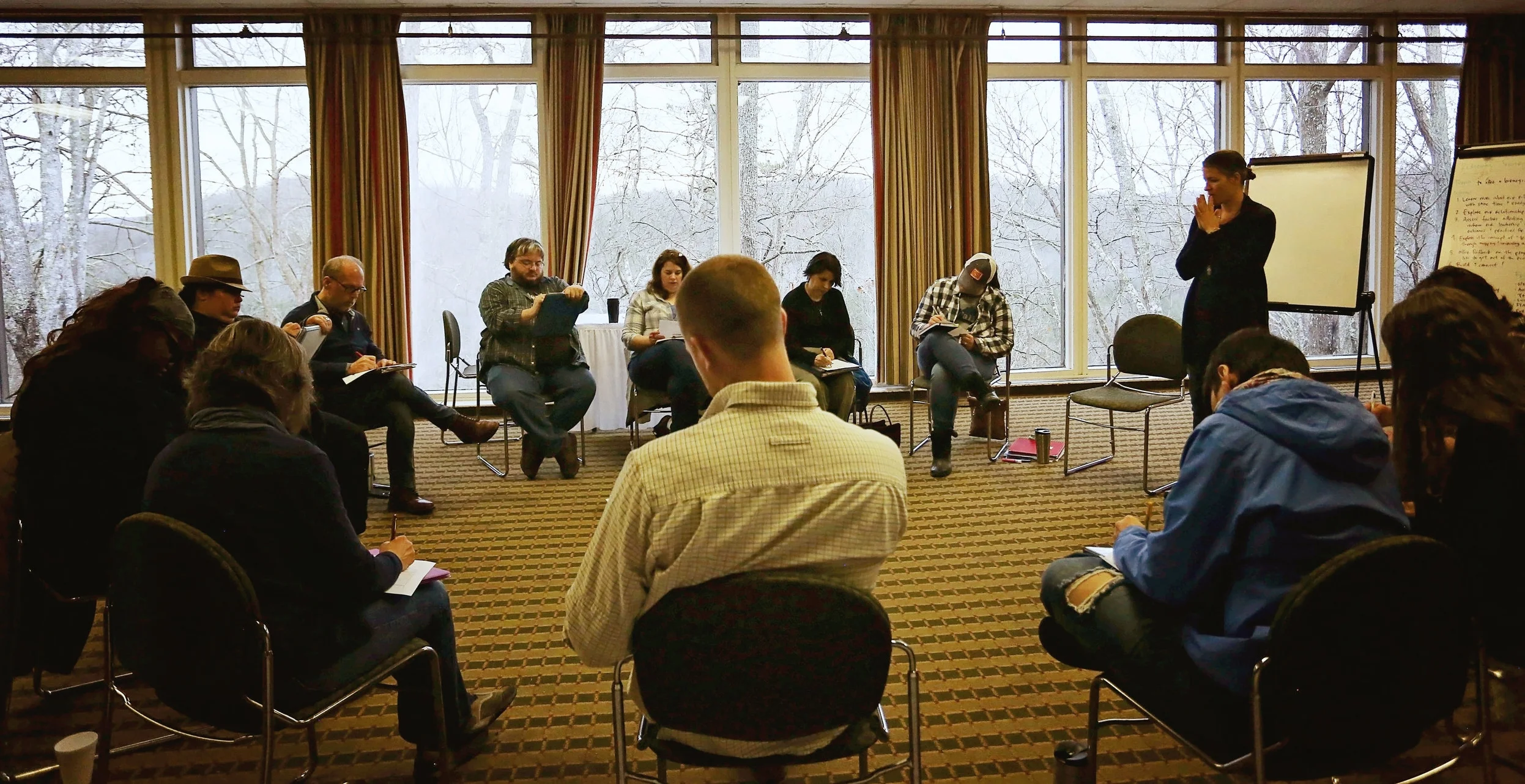 Participants learn and practice elements of the curriculum through a series of multi-day overnight retreats. The curriculum is centered on deepening personal awareness and interpersonal skills that support us in being more adaptive and resilient in our lives and leadership. Most of our sessions are facilitated indoors, though we also take advantage of the natural settings around us and spend some of our session time outdoors as well.